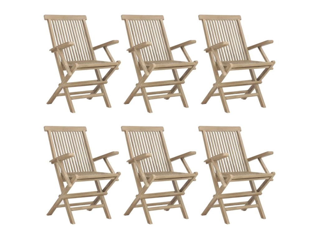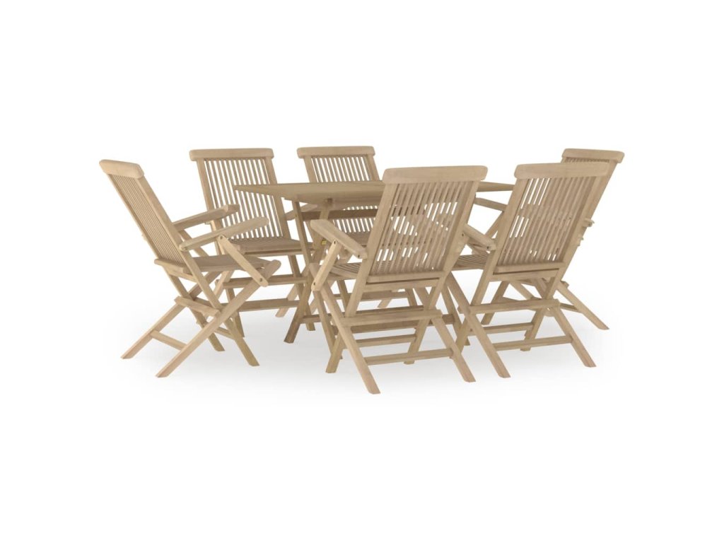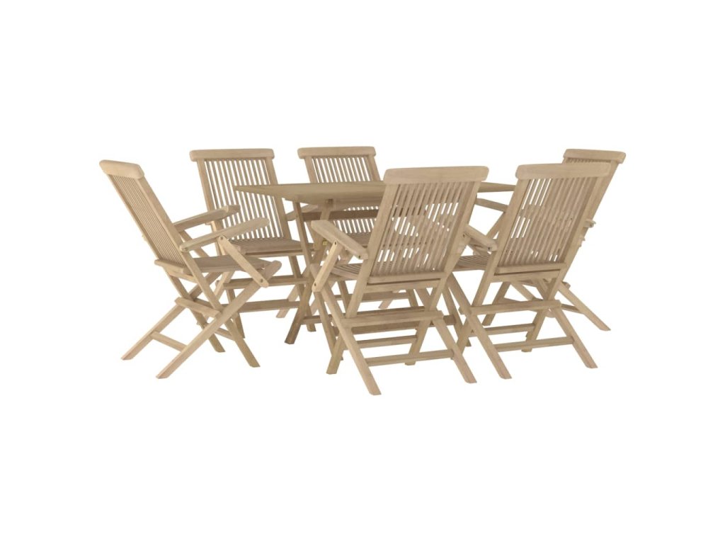 7dílný zahradní jídelní set šedý masivní teakové dřevo 3155044