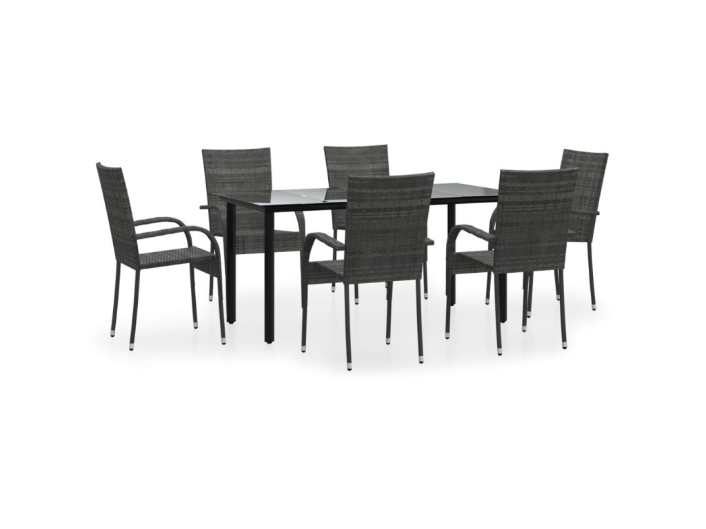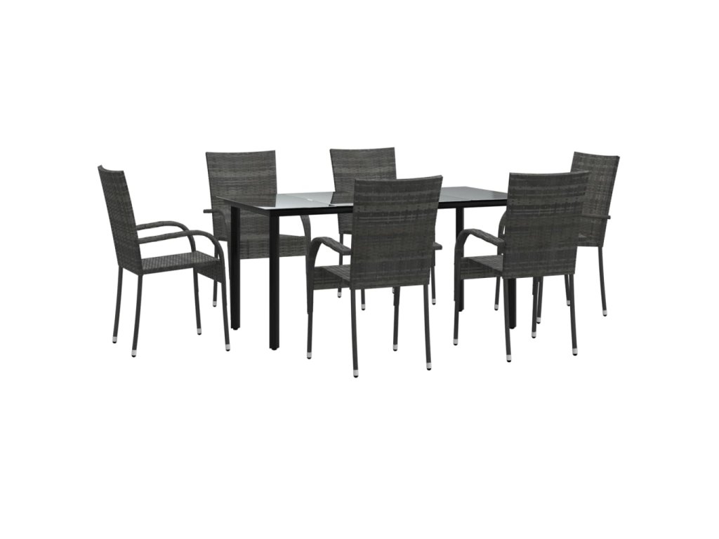 7dílný zahradní jídelní set šedý polyratan 3156665
