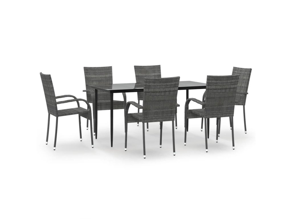 7dílný zahradní jídelní set šedý polyratan 3156677