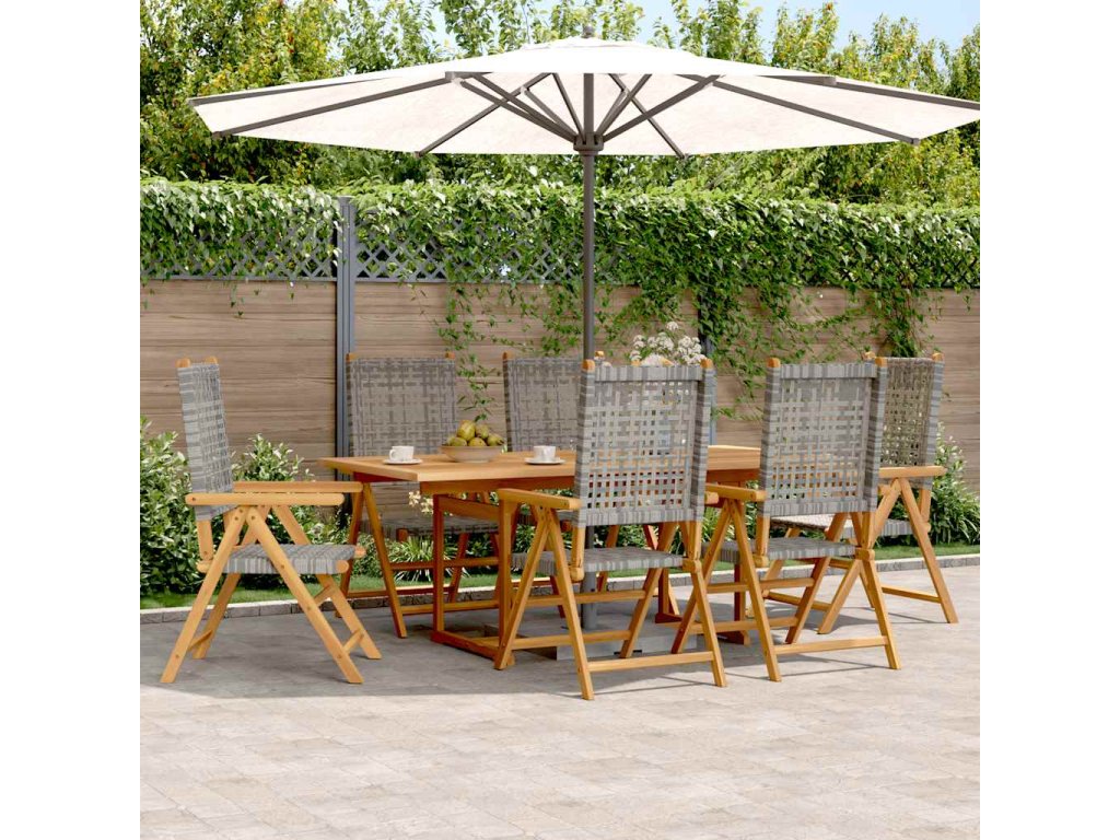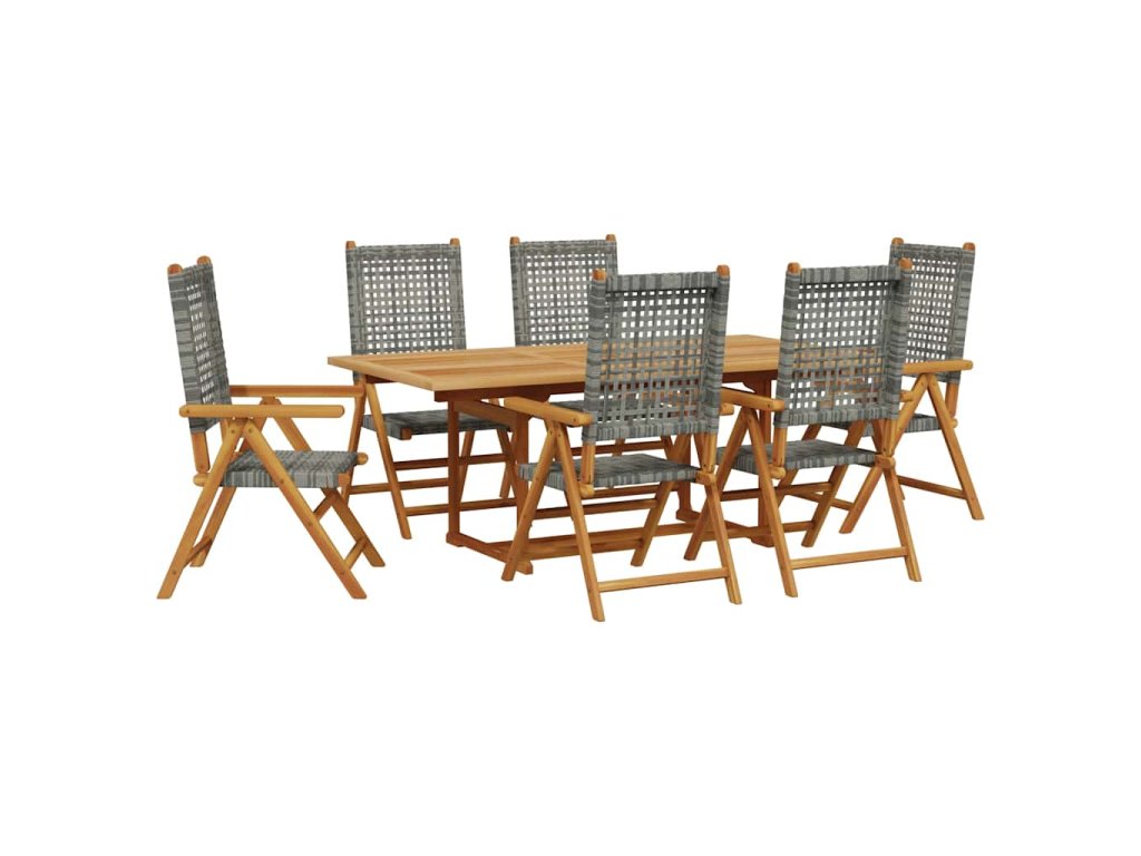 7dílný zahradní jídelní set šedý polyratan a masivní dřevo 3281731