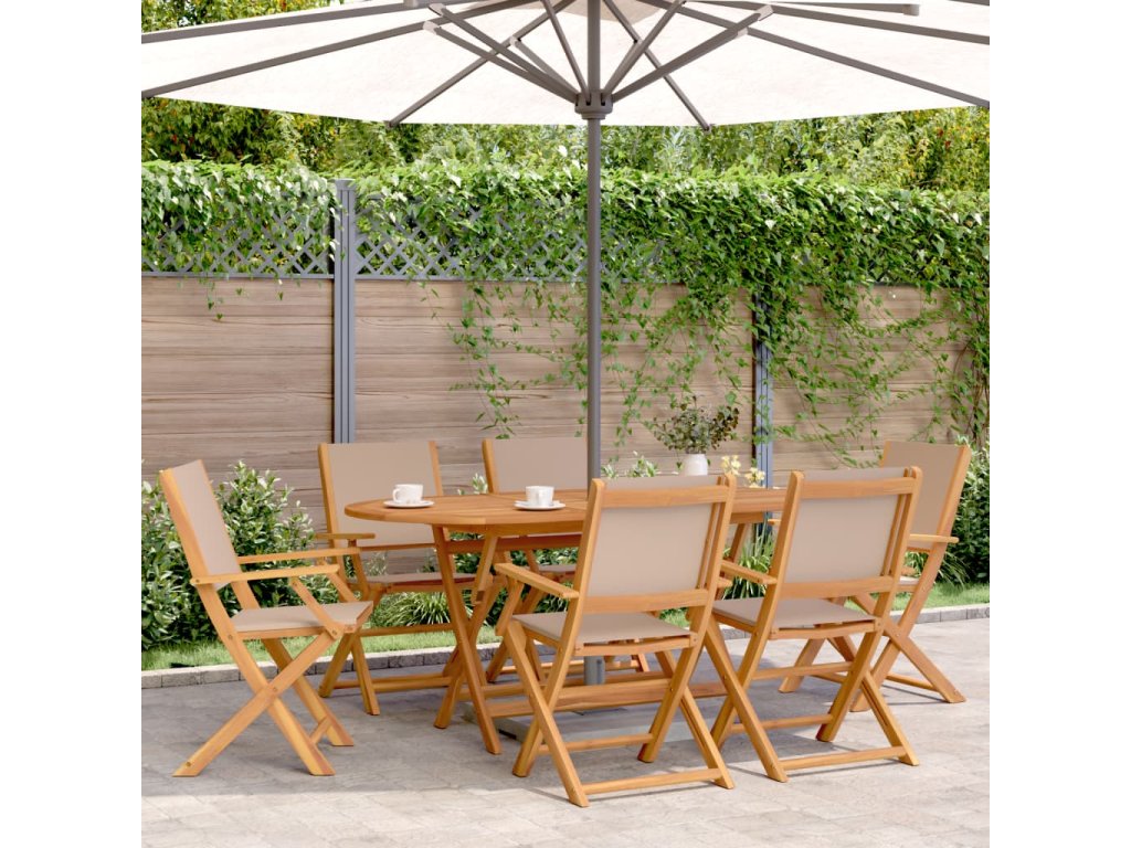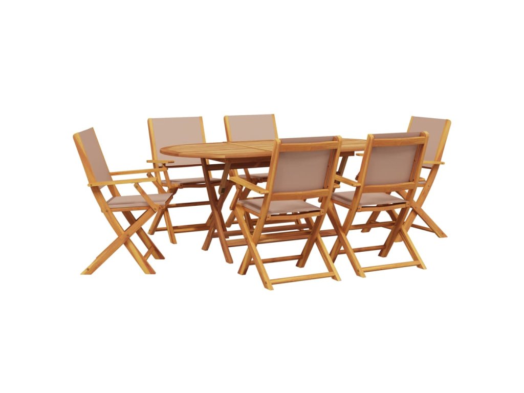 7dílný zahradní jídelní set taupe textil a masivní dřevo 3281714