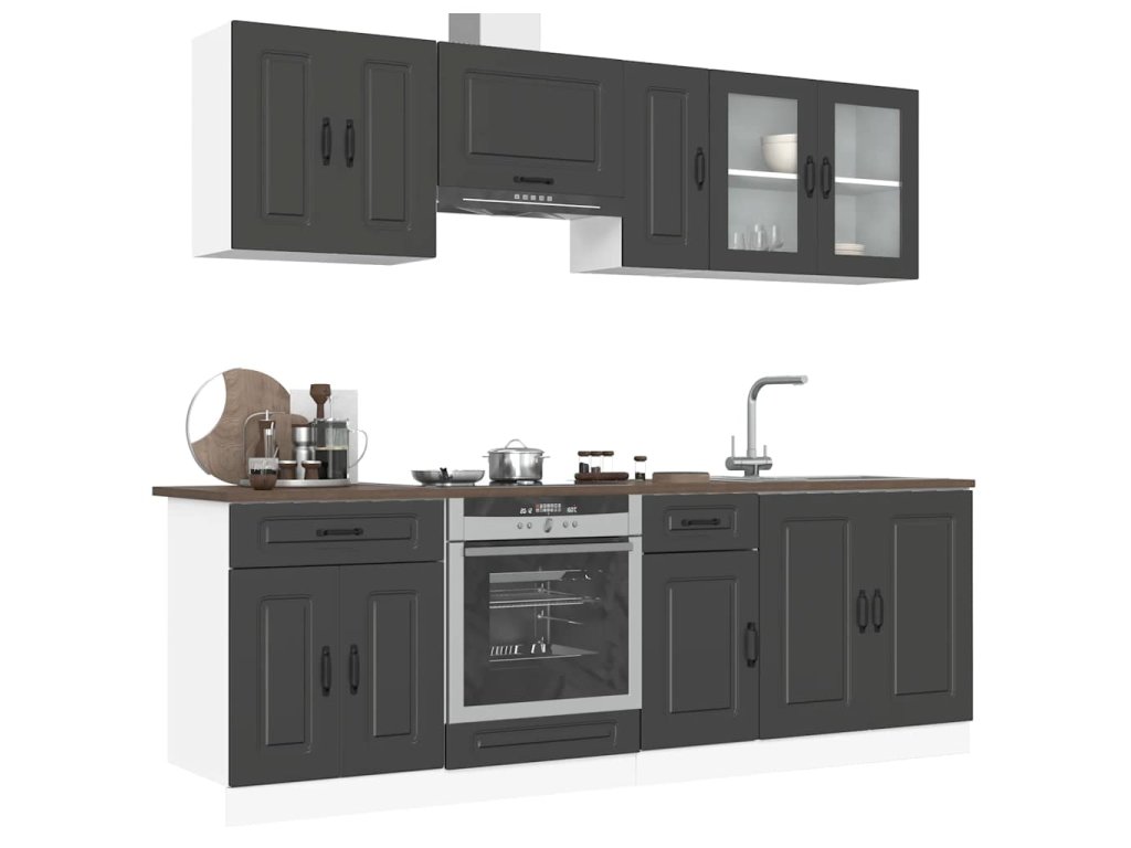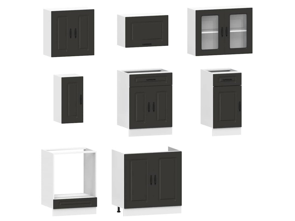 8dílná sada kuchyňských skříněk "Kalmar" černý kompozit 3314822