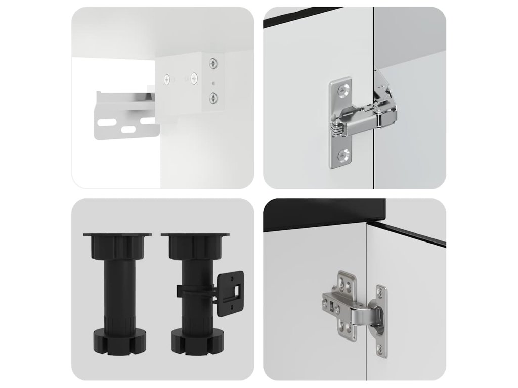 - Nastavitelné nožičky: Spodní skříňky mají nastavitelné nožičky, jejichž výšku lze nastavit tak, aby vyhovovaly uspořádání vaší kuchyně.