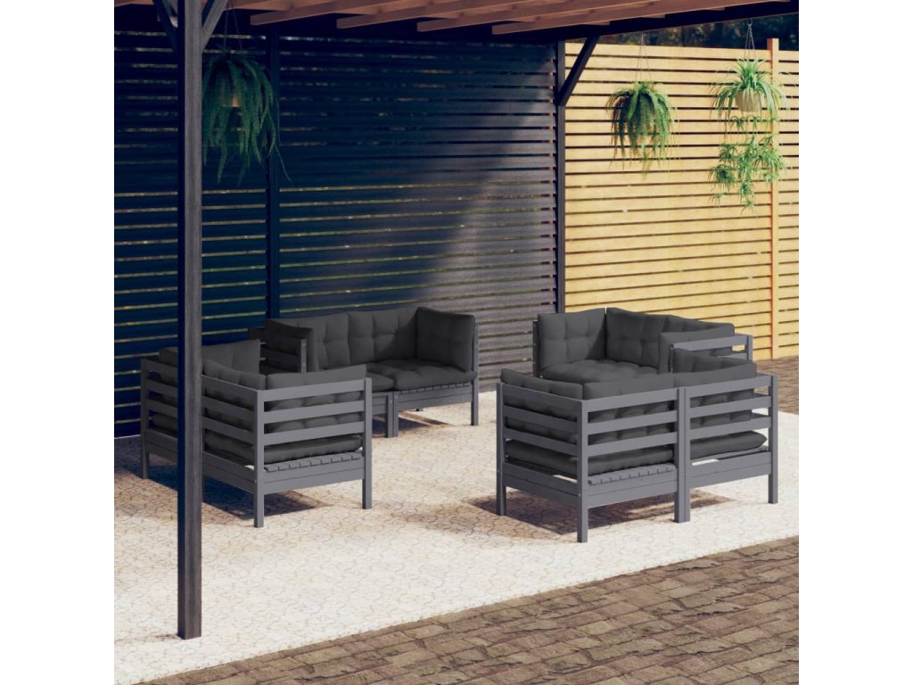 8dílná zahradní sedací souprava a antracitové podušky borovice 3096060