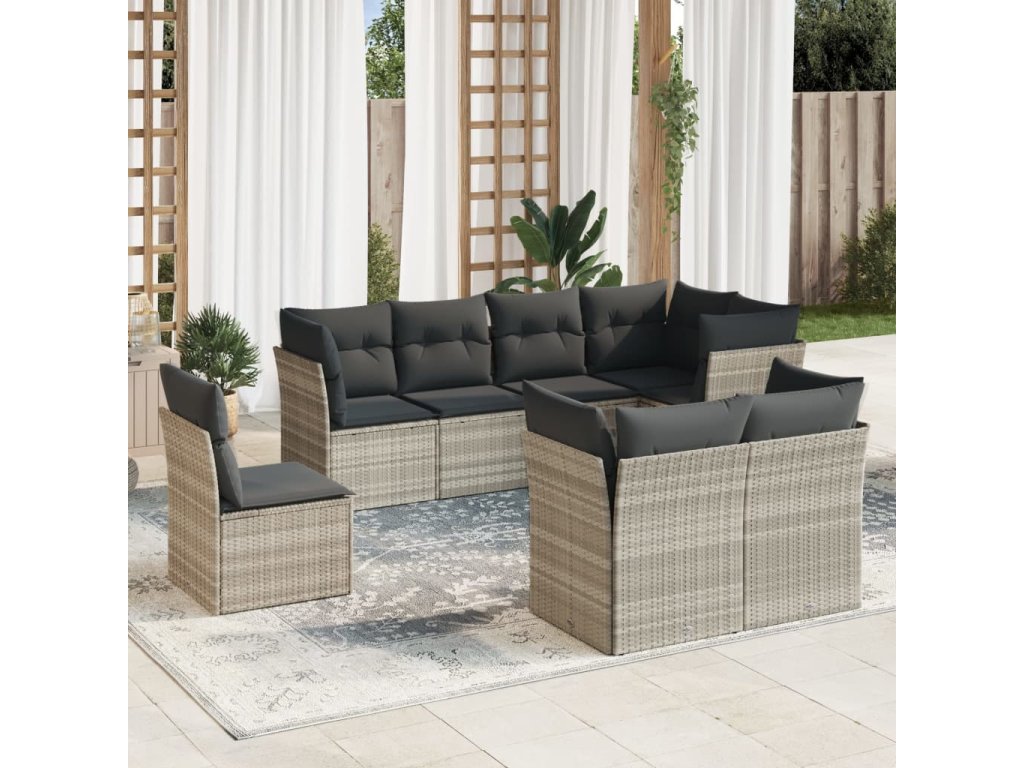 8dílná zahradní sedací souprava a podušky světle šedá polyratan 3217932