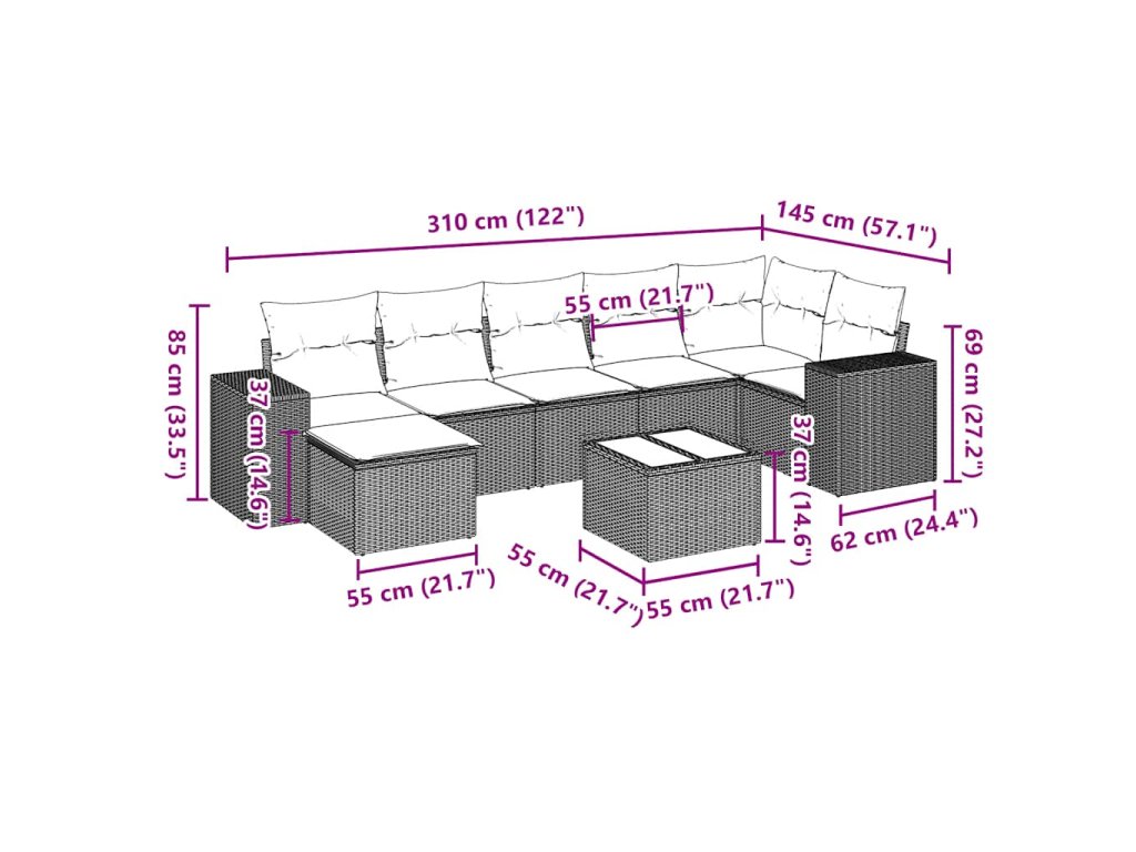 Tato zahradní sedací souprava je dokonalým doplňkem vaší zahrady, terasy nebo dvorku a poskytne vám pohodlné a příjemné místo, kde si můžete povídat s rodinou a přáteli nebo jen tak odpočívat a užívat si pobyt venku.
