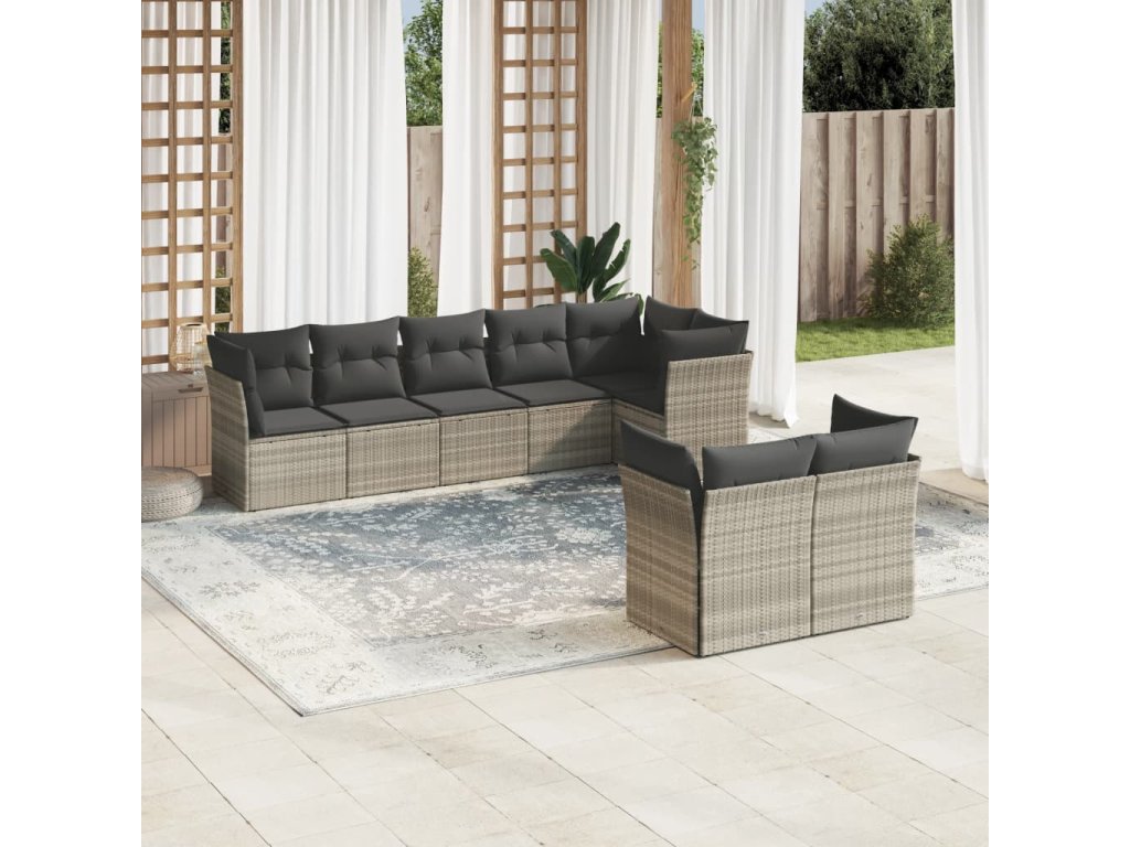 8dílná zahradní sedací souprava a podušky světle šedá polyratan 3249751