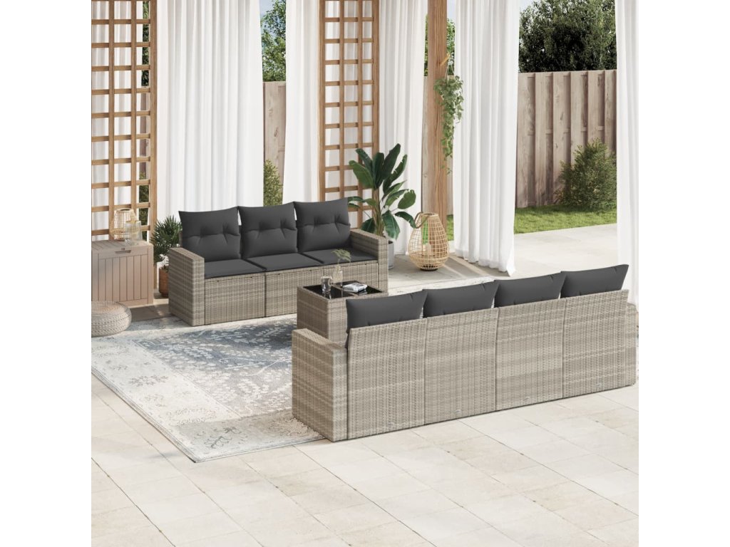 8dílná zahradní sedací souprava a podušky světle šedá polyratan 3251069