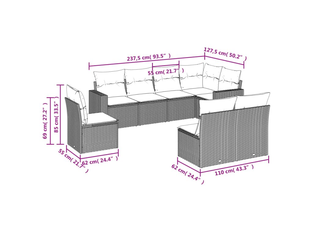 8dílná zahradní sedací souprava a podušky světle šedá polyratan 3251409