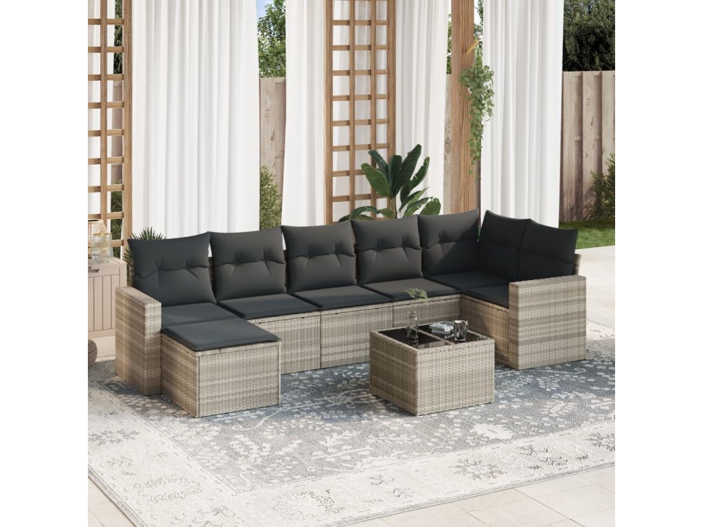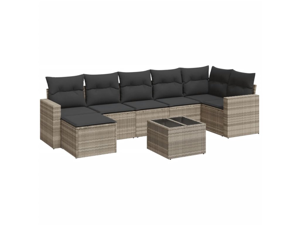 8dílná zahradní sedací souprava a podušky světle šedá polyratan 3251629