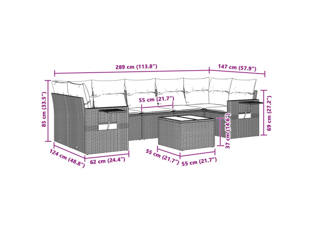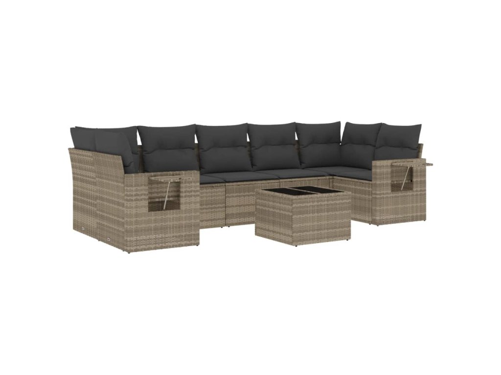 8dílná zahradní sedací souprava a podušky světle šedá polyratan 3252279