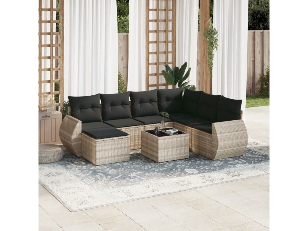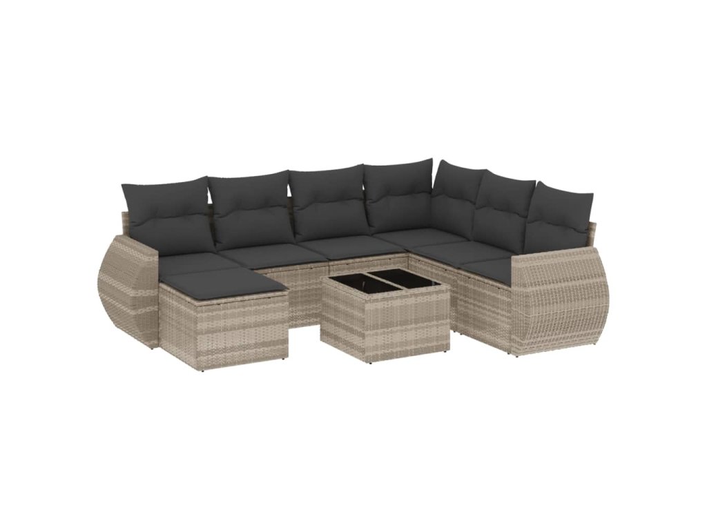 8dílná zahradní sedací souprava a podušky světle šedá polyratan 3254049