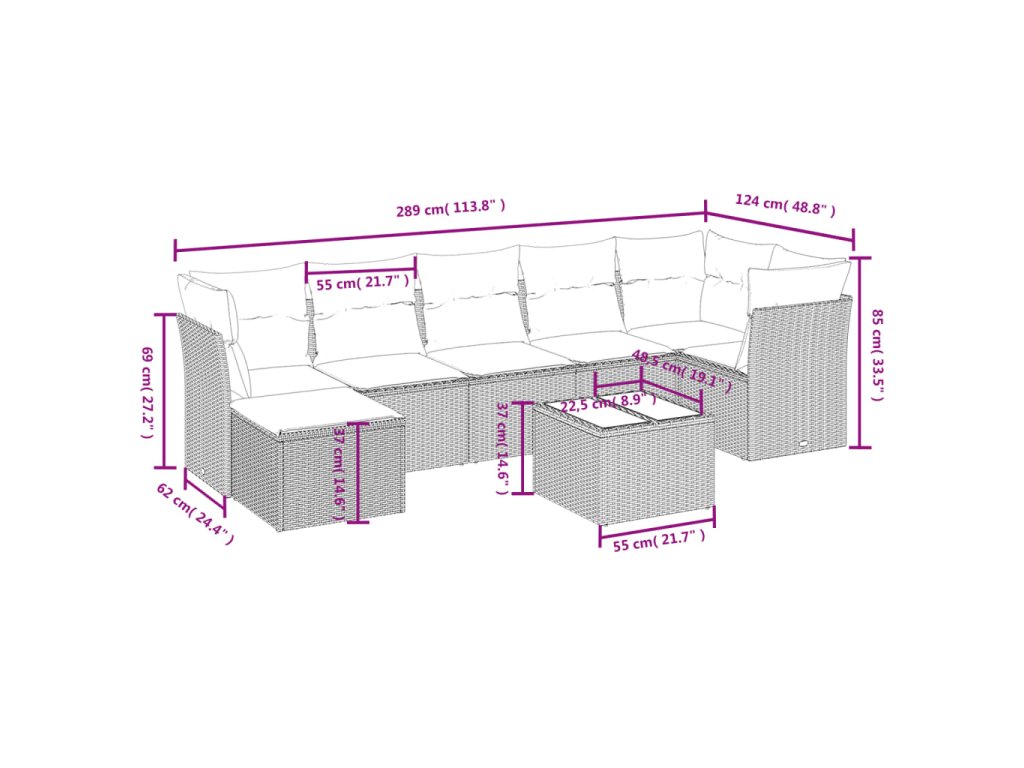 8dílná zahradní sedací souprava a podušky světle šedá polyratan 3263208