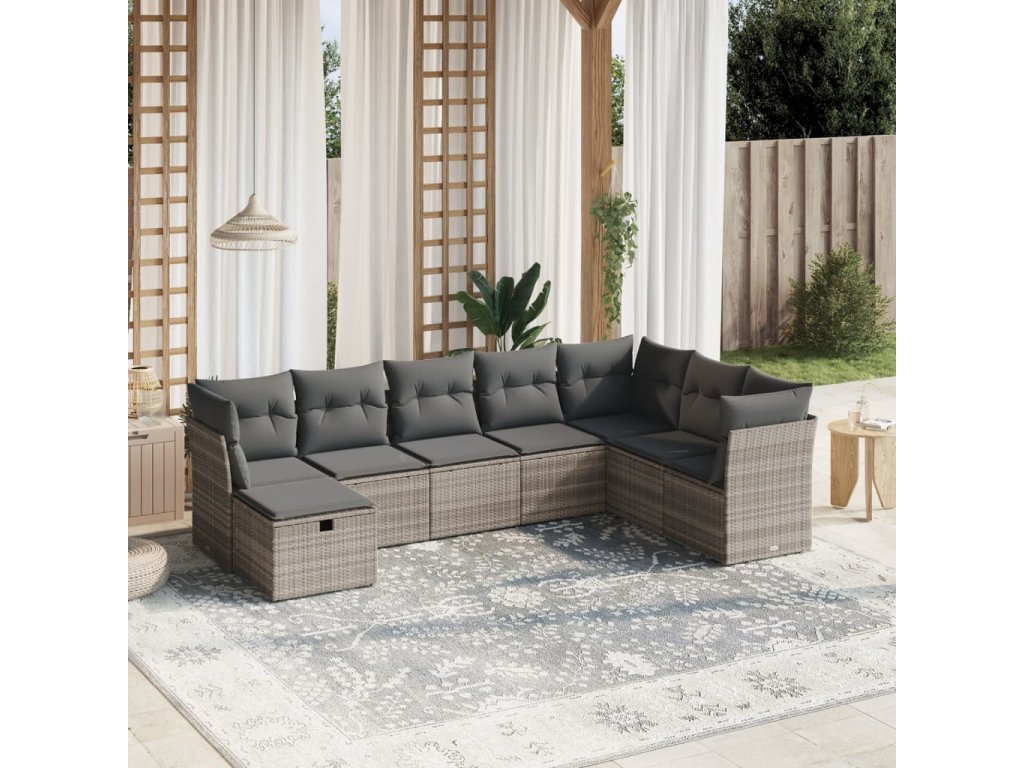 8dílná zahradní sedací souprava a podušky světle šedá polyratan 3263278