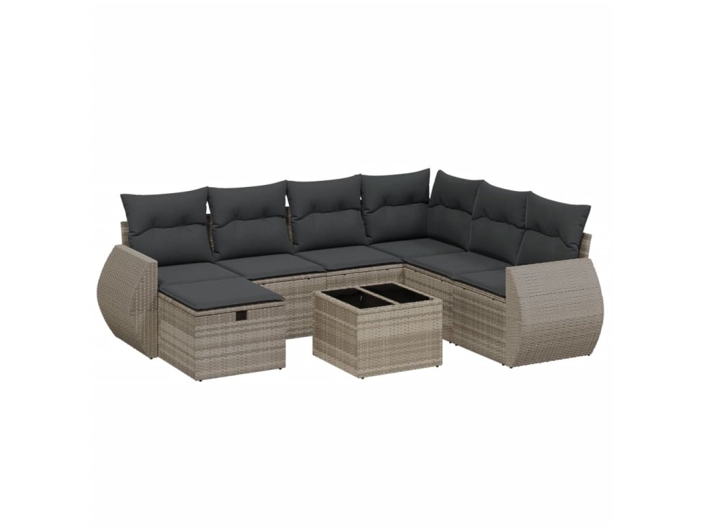 8dílná zahradní sedací souprava a podušky světle šedá polyratan 3264158