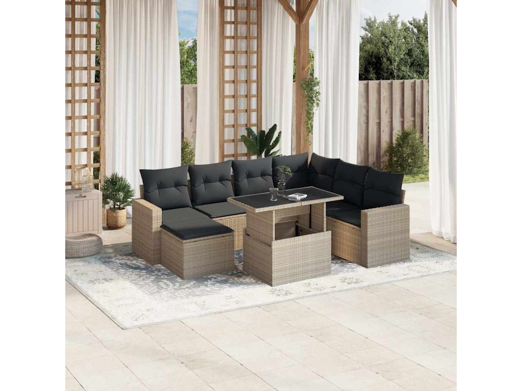 8dílná zahradní sedací souprava a podušky světle šedá polyratan 3267442