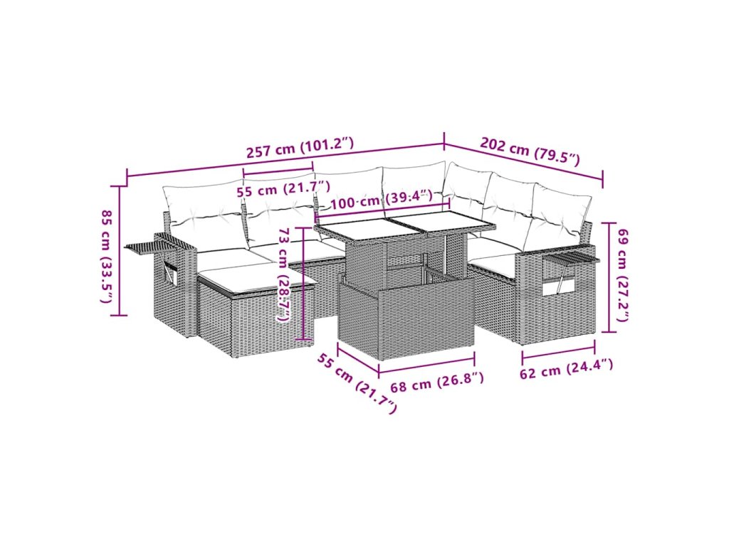 - Modulární design: Tato sada venkovního nábytku se vyznačuje modulární konstrukcí, je tedy zcela flexibilní a lze ji snadno přemisťovat, takže si můžete uspořádat venkovní nábytek dle vašich potřeb.