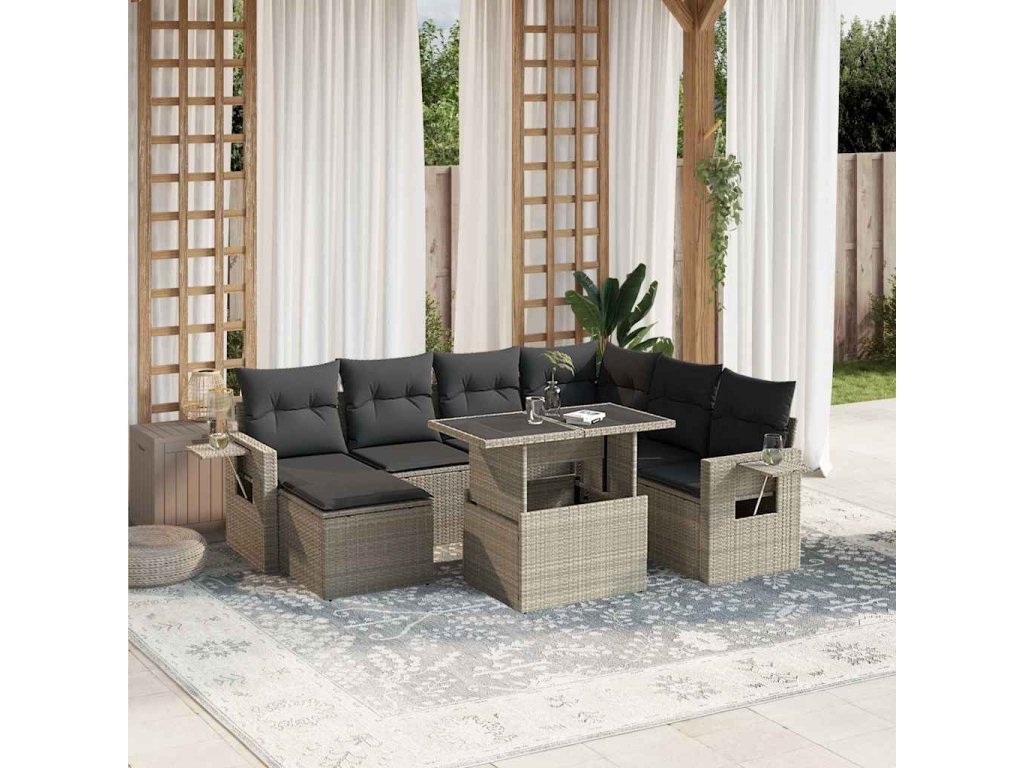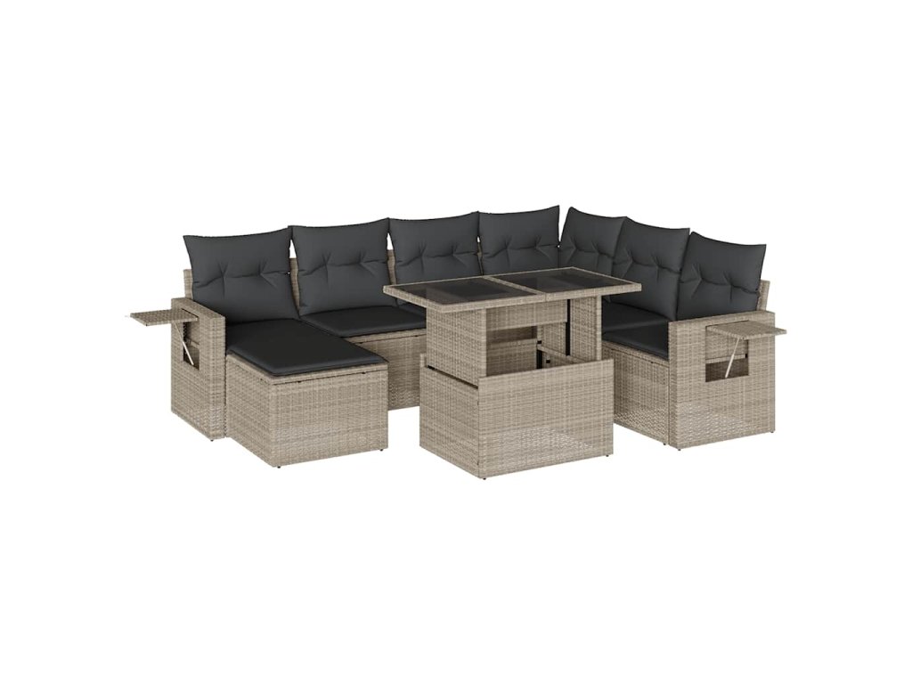 8dílná zahradní sedací souprava a podušky světle šedá polyratan 3268072