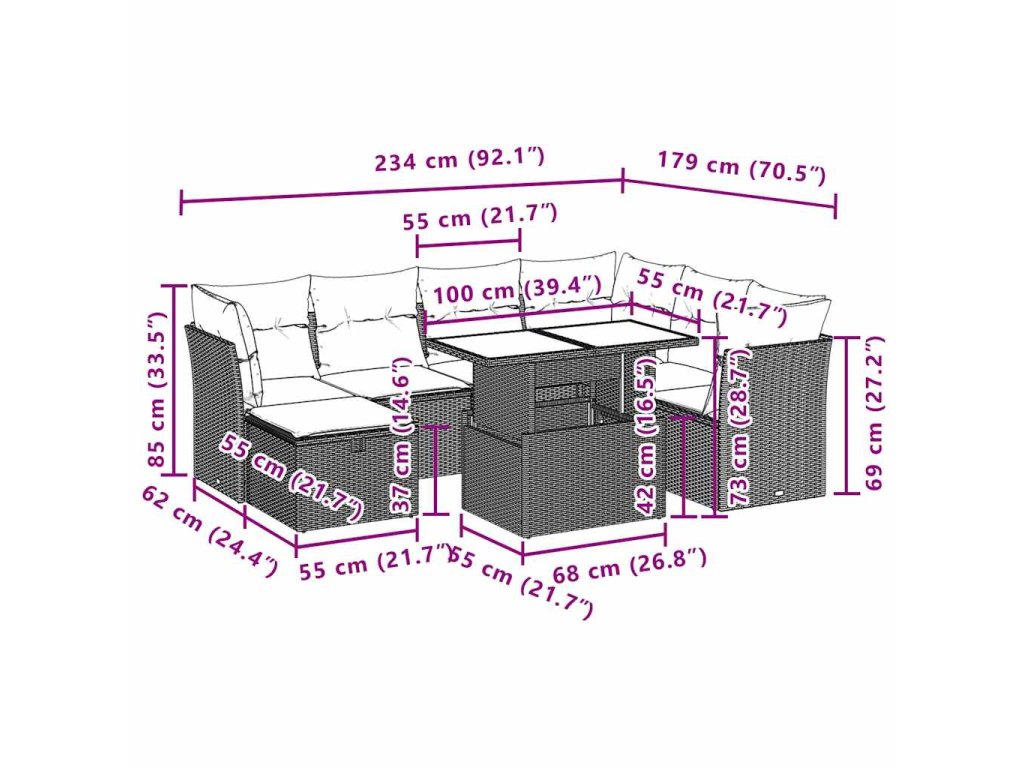 Tato zahradní sedací souprava je dokonalým doplňkem vaší zahrady, terasy nebo dvorku a poskytne vám pohodlné a příjemné místo, kde si můžete povídat s rodinou a přáteli nebo jen tak odpočívat a užívat si pobyt venku.