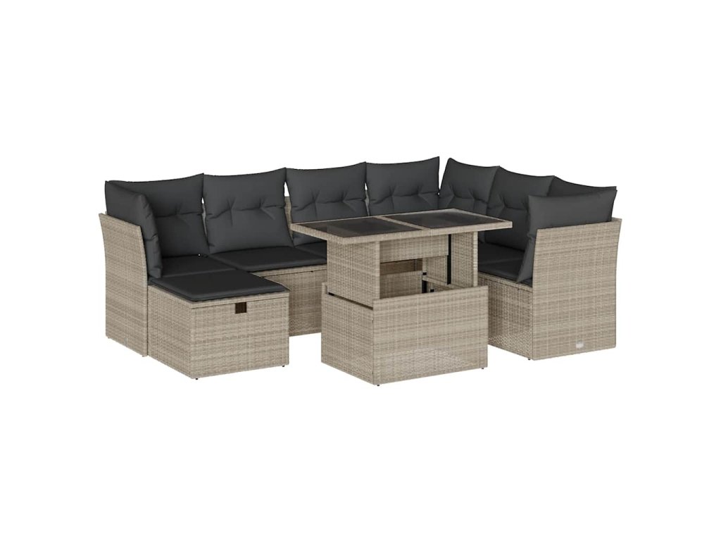 8dílná zahradní sedací souprava a podušky světle šedá polyratan 3274682