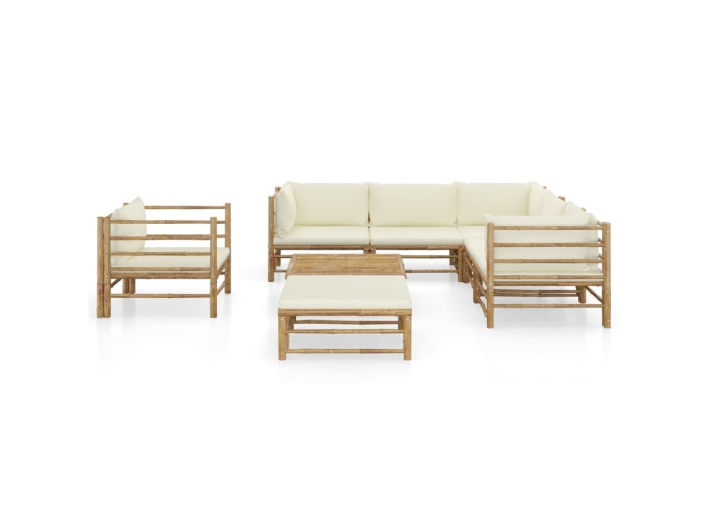 8dílná zahradní sedací souprava + krémově bílé podušky bambus 3058217