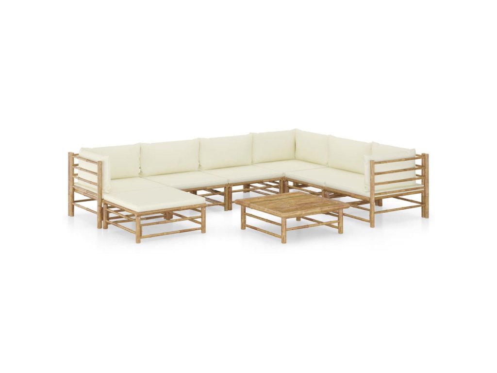 8dílná zahradní sedací souprava + krémově bílé podušky bambus 3058219