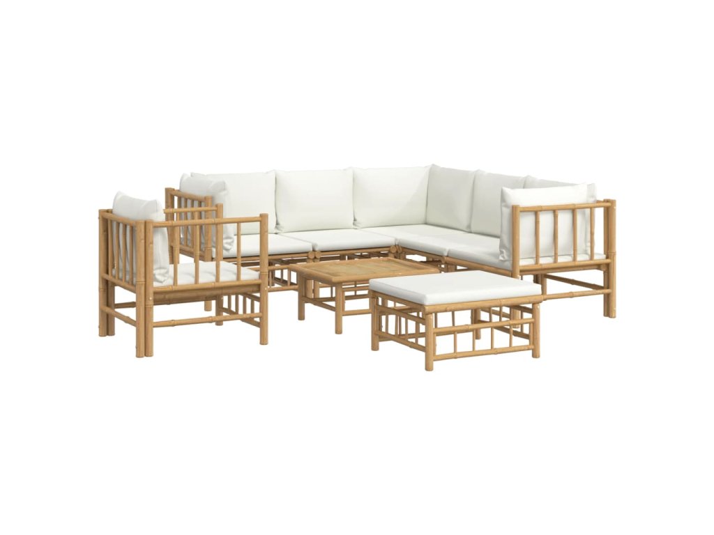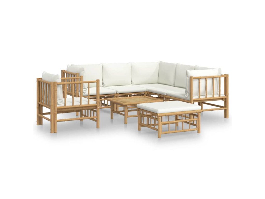 8dílná zahradní sedací souprava krémově bílé podušky bambus 3155190