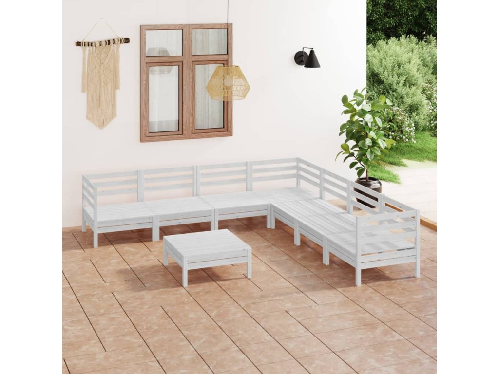 8dílná zahradní sedací souprava masivní borovice bílá 3083100