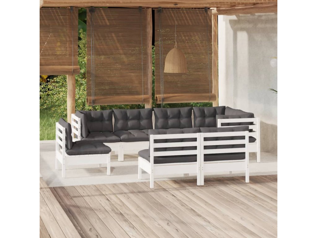 8dílná zahradní sedací souprava podušky bílá masivní borovice 3096467