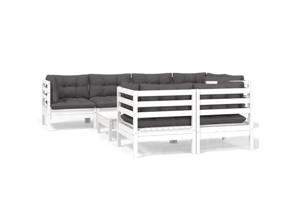 8dílná zahradní sedací souprava podušky bílá masivní borovice 3096497