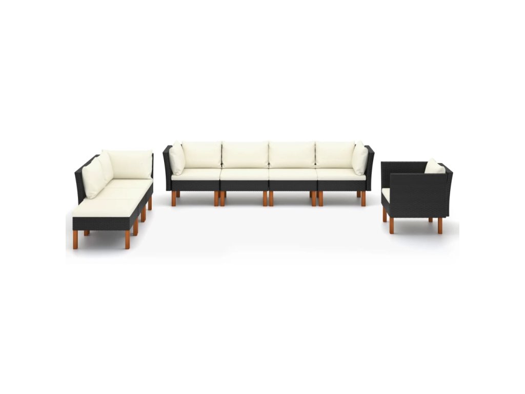 8dílná zahradní sedací souprava polyratan a eukalyptus černá 3082087