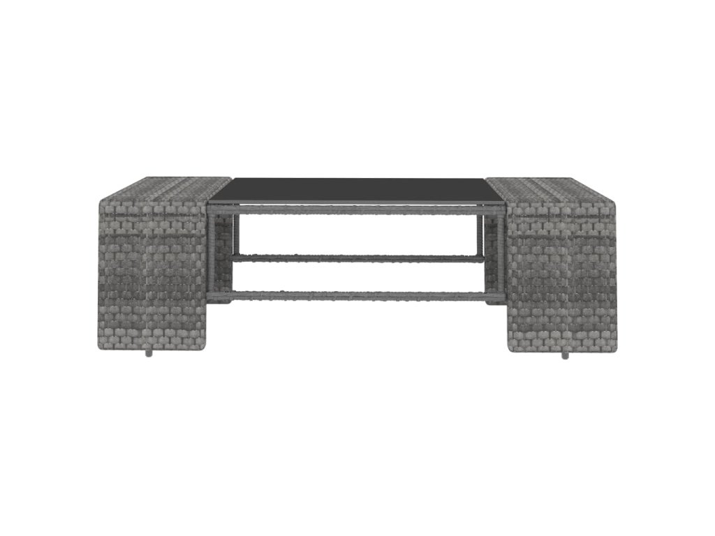 - Materiál: PE ratan, textil (100% polyester), práškově lakovaná ocel, tvrzené sklo