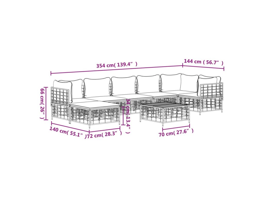 8dílná zahradní sedací souprava s poduškami antracit polyratan 3186777