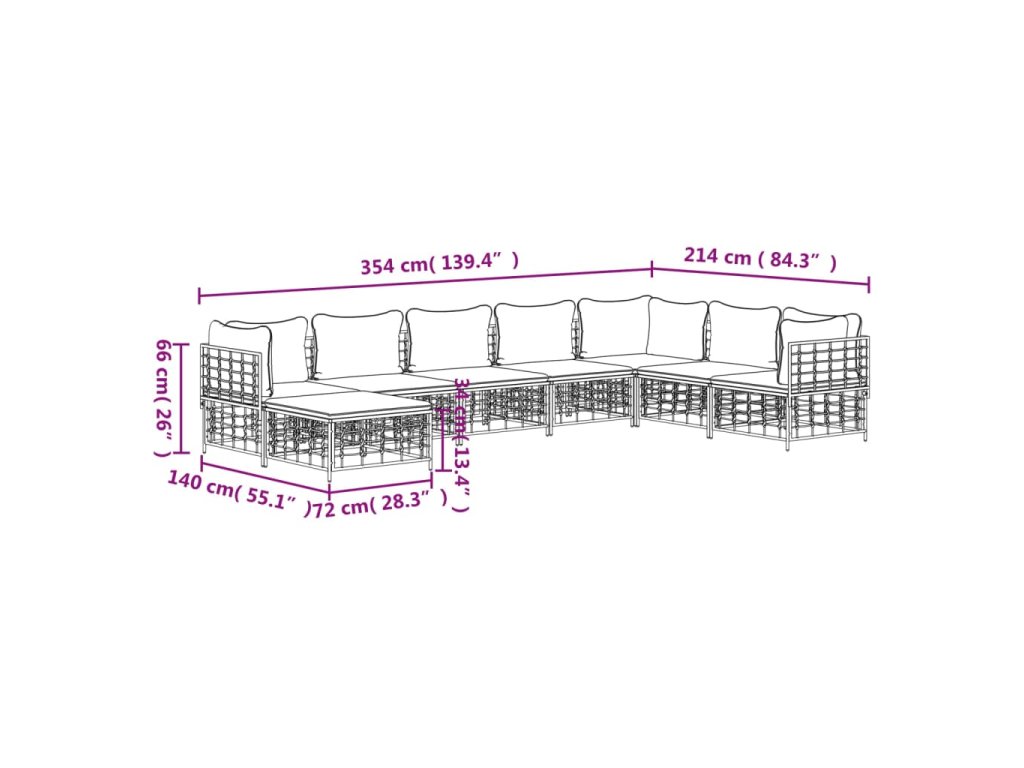 8dílná zahradní sedací souprava s poduškami antracit polyratan 3186791