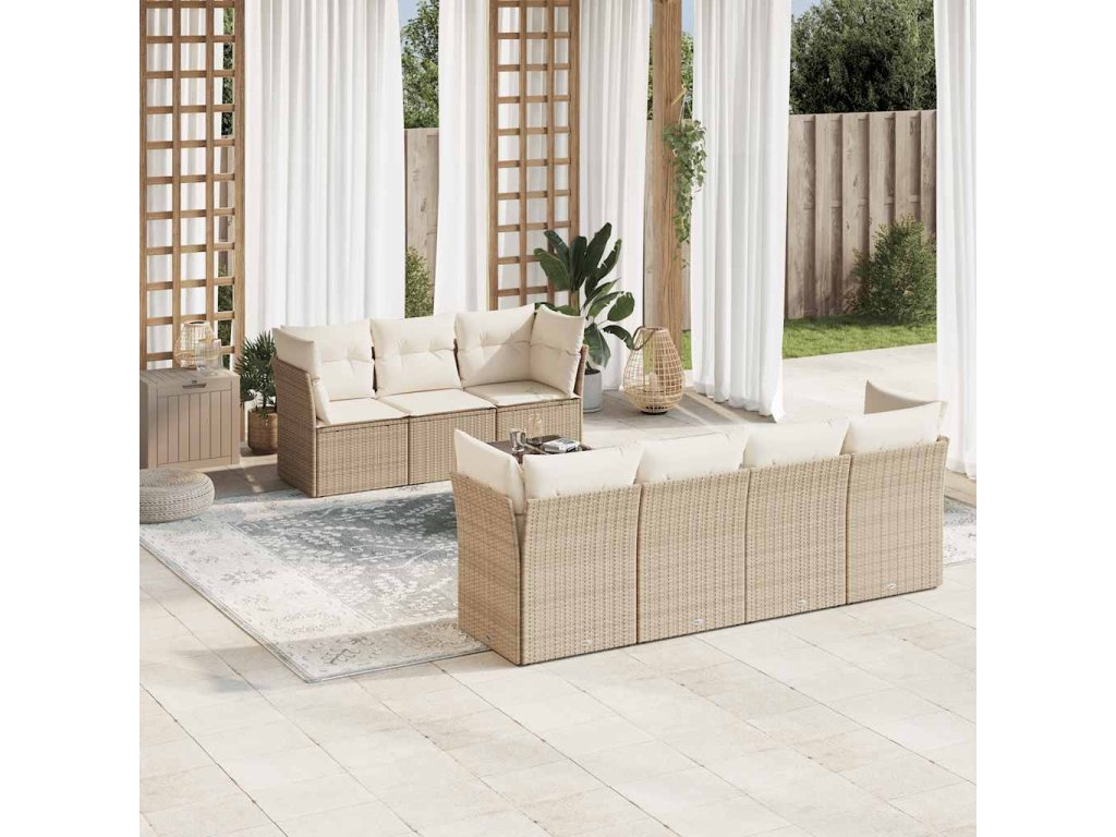 8dílná zahradní sedací souprava s poduškami béžová polyratan 3217278