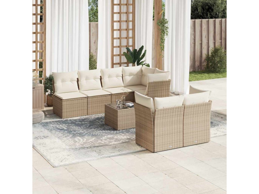 8dílná zahradní sedací souprava s poduškami béžová polyratan 3217298