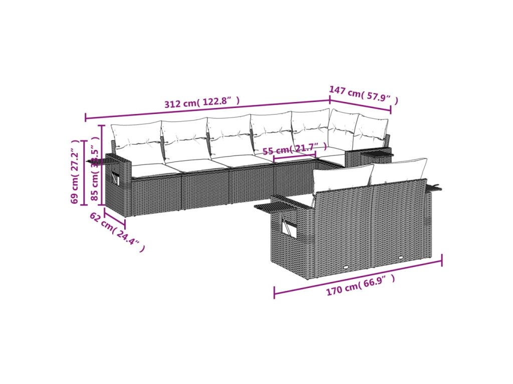 Tato zahradní sedací souprava je dokonalým doplňkem vaší zahrady, terasy nebo dvorku a poskytne vám pohodlné a příjemné místo, kde si můžete povídat s rodinou a přáteli nebo jen tak odpočívat a užívat si pobyt venku.