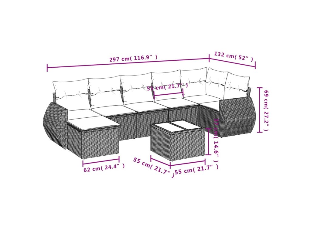 8dílná zahradní sedací souprava s poduškami béžová polyratan 3221688