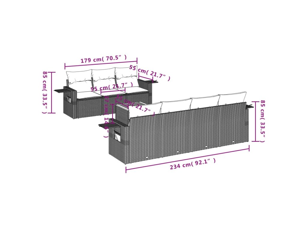 Tato zahradní sedací souprava je dokonalým doplňkem vaší zahrady, terasy nebo dvorku a poskytne vám pohodlné a příjemné místo, kde si můžete povídat s rodinou a přáteli nebo jen tak odpočívat a užívat si pobyt venku.