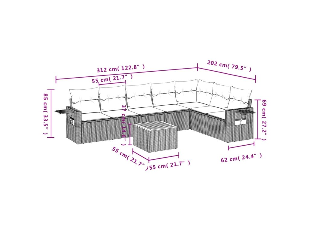8dílná zahradní sedací souprava s poduškami béžová polyratan 3224596