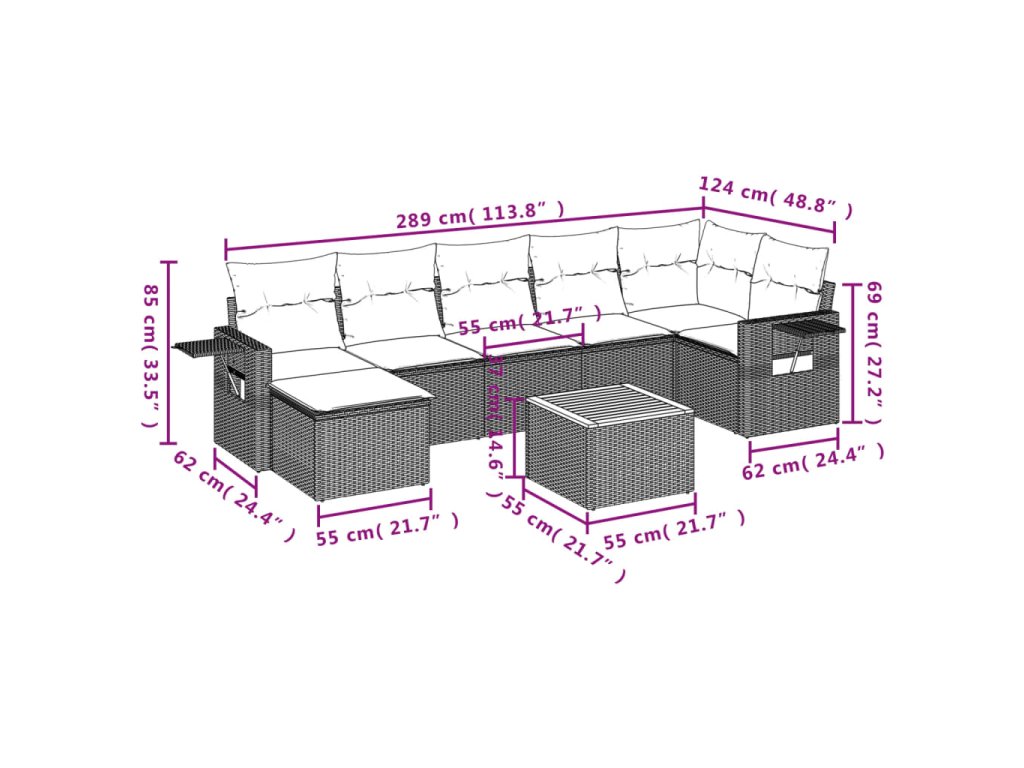 Tato zahradní sedací souprava je dokonalým doplňkem vaší zahrady, terasy nebo dvorku a poskytne vám pohodlné a příjemné místo, kde si můžete povídat s rodinou a přáteli nebo jen tak odpočívat a užívat si pobyt venku.