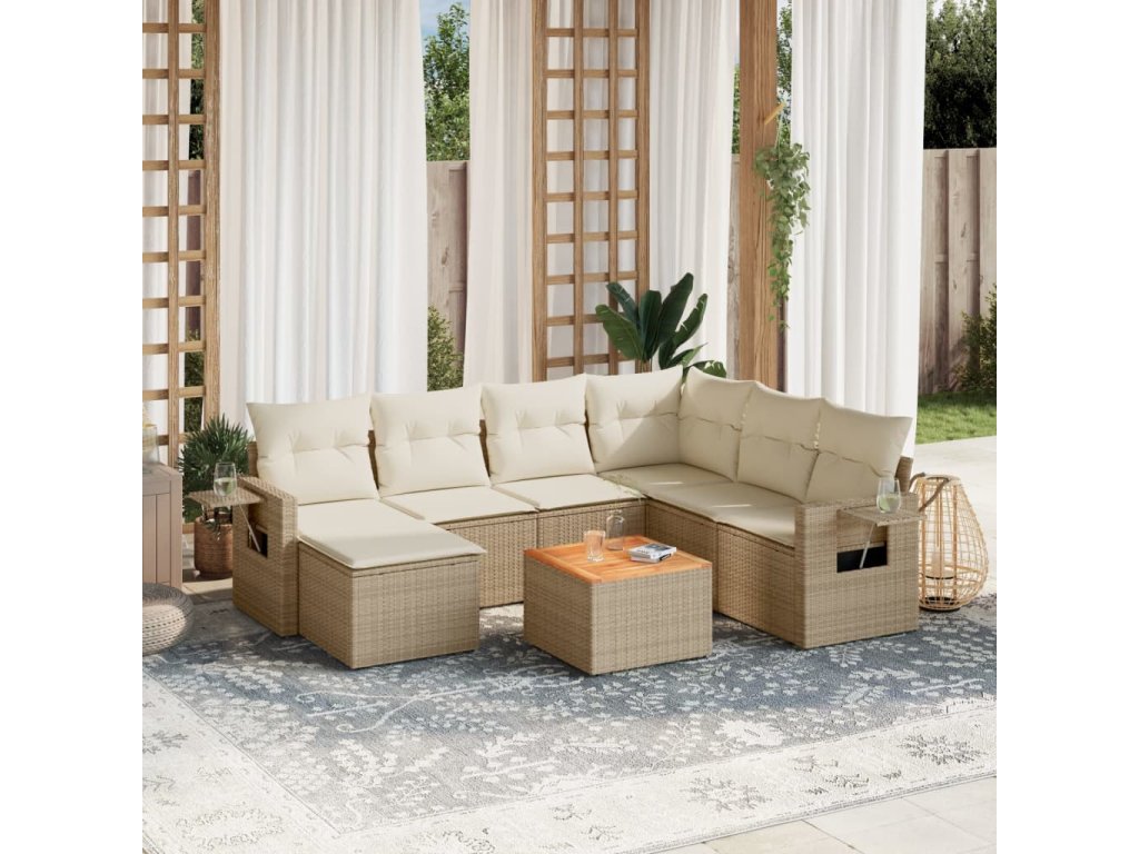 8dílná zahradní sedací souprava s poduškami béžová polyratan 3224679