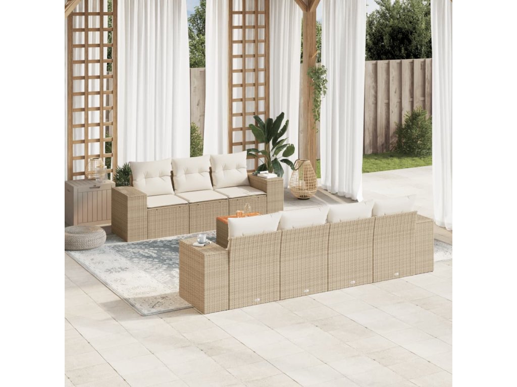 8dílná zahradní sedací souprava s poduškami béžová polyratan 3225351