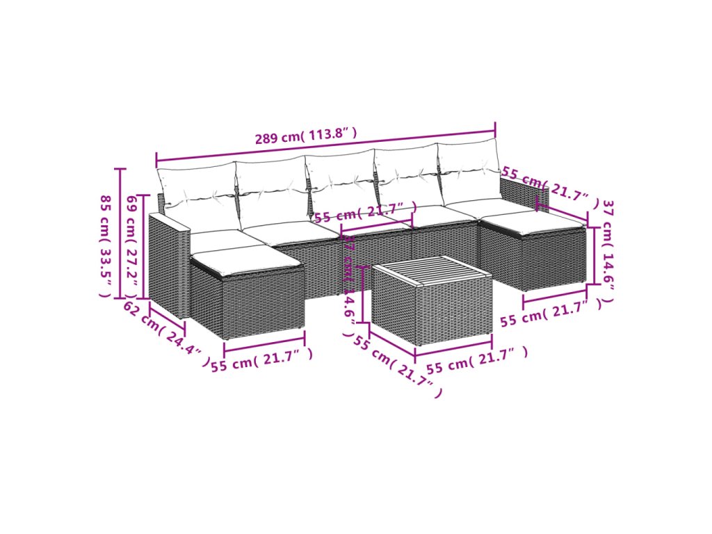 8dílná zahradní sedací souprava s poduškami béžová polyratan 3226240