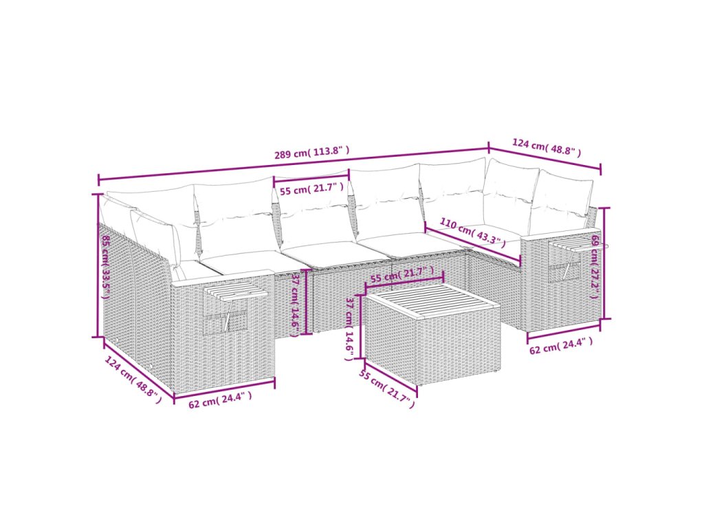 - Modulární design: Tato sada venkovního nábytku se vyznačuje modulární konstrukcí, je tedy zcela flexibilní a lze ji snadno přemisťovat, takže si můžete uspořádat venkovní nábytek dle vašich potřeb.