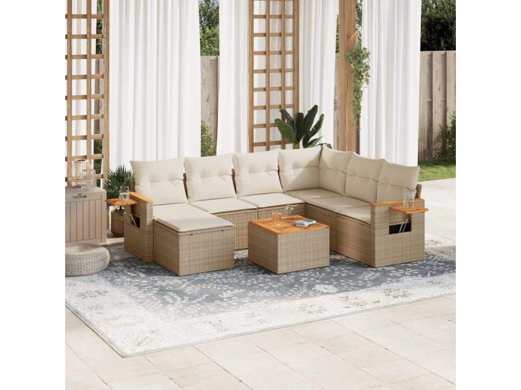 8dílná zahradní sedací souprava s poduškami béžová polyratan 3227052