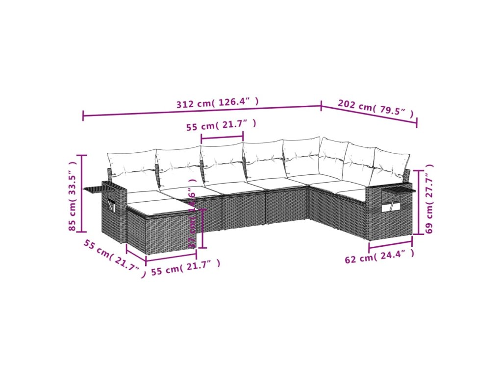 8dílná zahradní sedací souprava s poduškami béžová polyratan 3252895