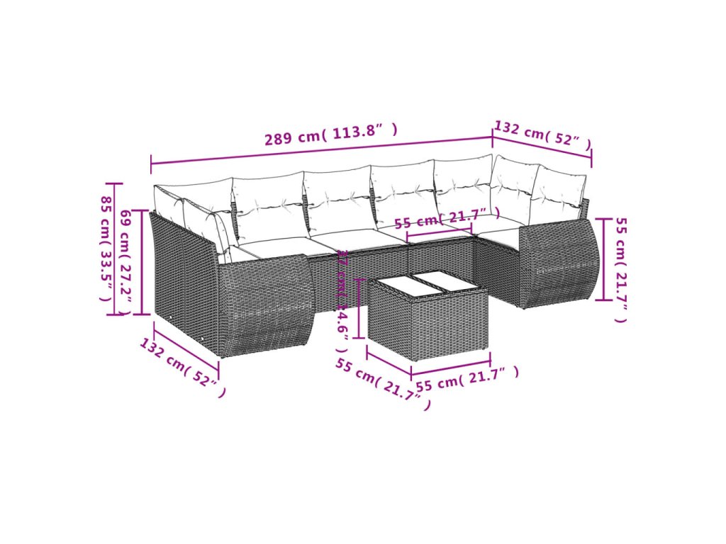 8dílná zahradní sedací souprava s poduškami béžová polyratan 3253476