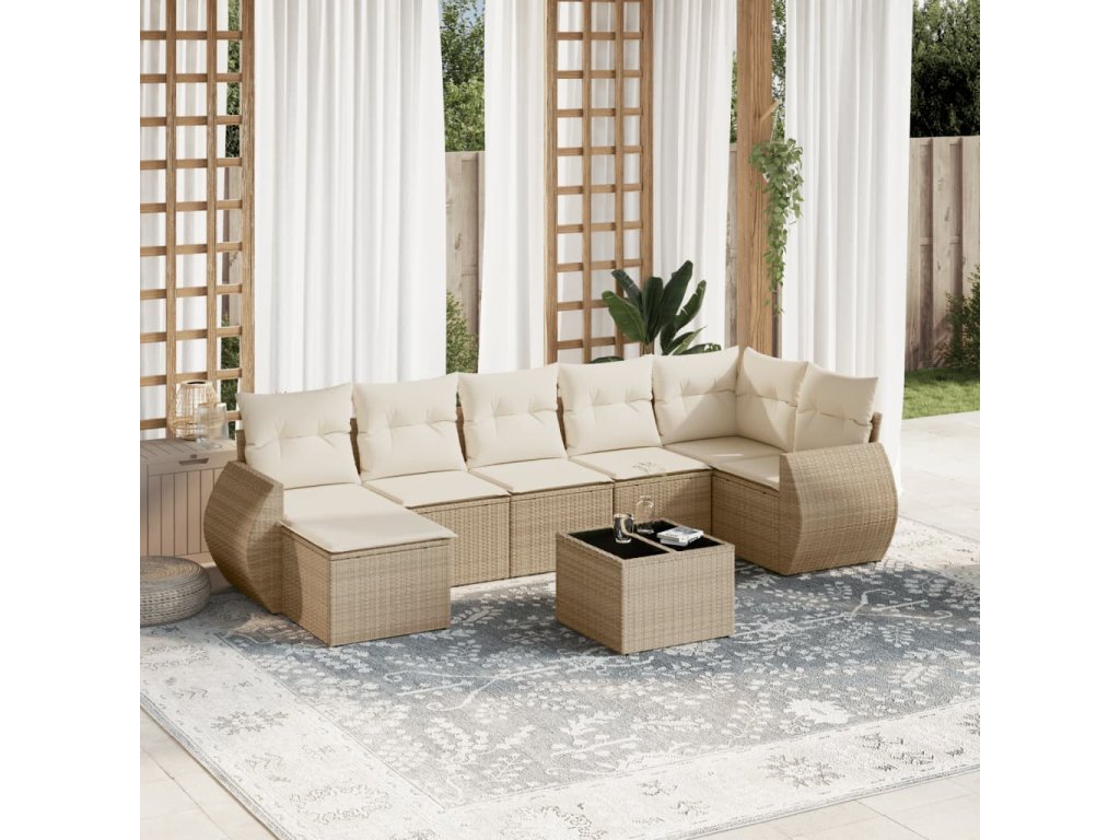 8dílná zahradní sedací souprava s poduškami béžová polyratan 3254025