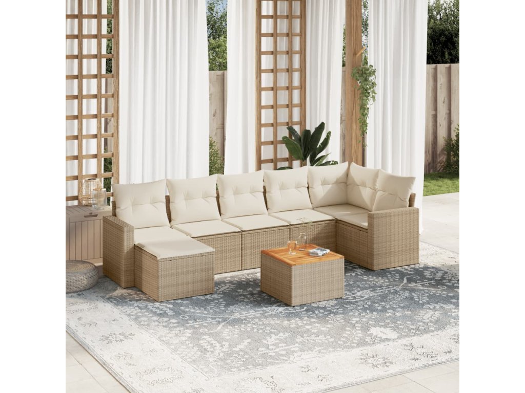8dílná zahradní sedací souprava s poduškami béžová polyratan 3256562